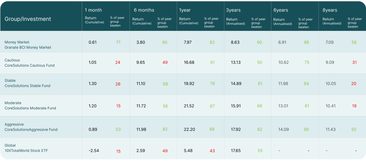Using some of the industry’s most trusted partners, we carefully monitor the performance of the funds on our platform against their peers and report on our fund performance to our clients.